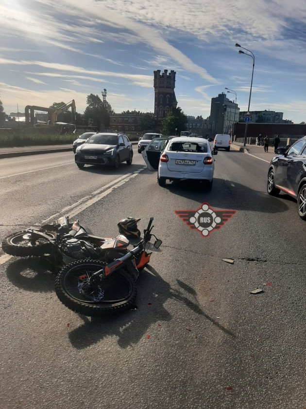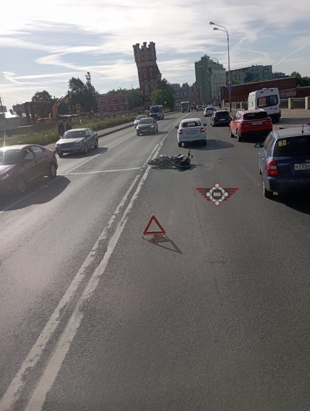 Дтп с мото примерно в 8:00 на Октябрьской набережной, д.102А. Авто и мот. Скорая на месте. О состоянии мотоциклиста информации нет.