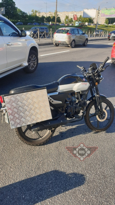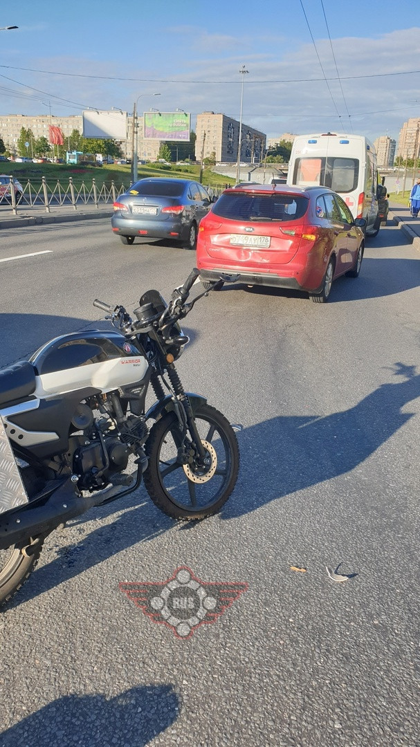 Дтп с мото на ул.Типанова, д.34к1. Мотоциклист в сознании, травма руки и колена. Родственникам не дозвонились пока.