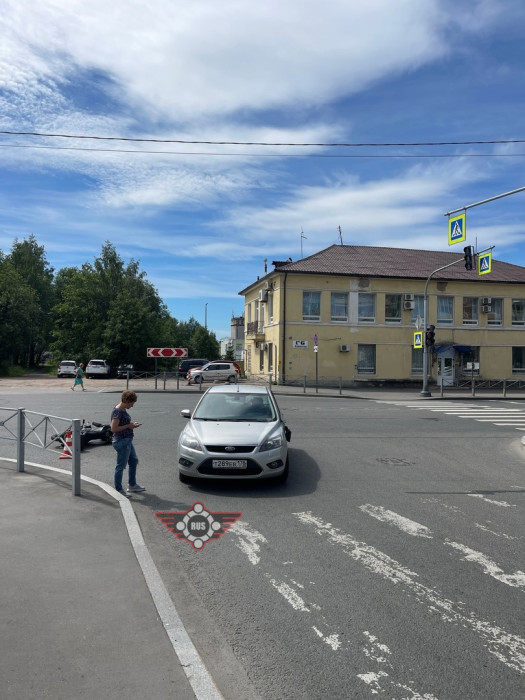 Дтп с мото примерно в 14:30 на ул. Коммуны, д. 66. Авто и мопед без номеров. Мотоциклист жив, разодрал колено.