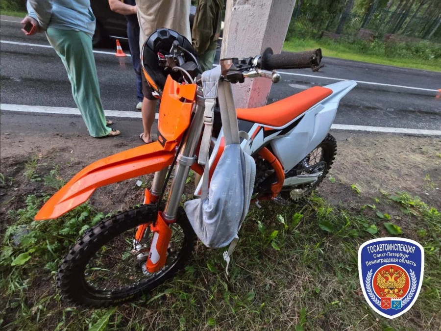 Дтп с мото 04.07.2024 примерно в 21:25 на Приморском ш., д. 397/2, поселок Солнечное, Курортного района. 41-летний водитель, управляя автомобилем Chery Tiggo, при объезде препятствия (срез асфальтного покрытия) выехал на полосу, предназначенную для встречного движения, и совершил столкновение с двигавшимся во встречном направлении мотоциклом КТМ 85sx, под управлением 12-летнего мальчика. В результате ДТП несовершеннолетний был госпитализирован в медицинское учреждение в состоянии средней степени тяжести.