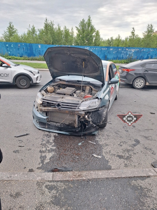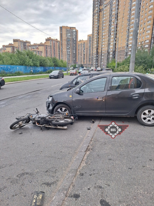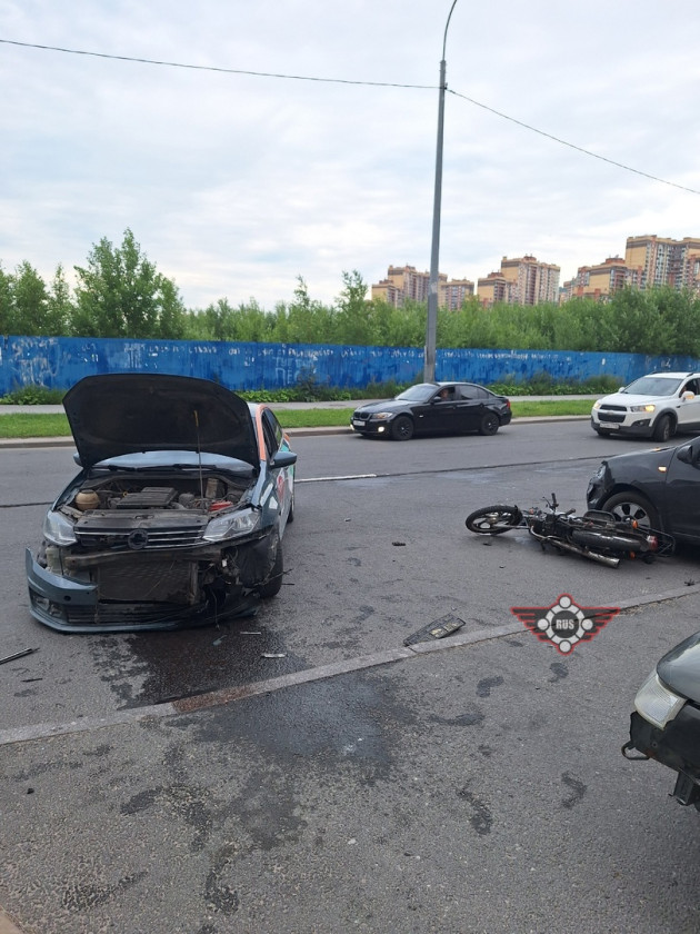 Дтп с мопедом. ул. Валерия Гаврилина, д.3к1. Авто (каршеринг) и мопед Альфа. За рулём мопеда молодой парень, отделался царапинами, находится в машине скорой помощи. Водитель авто, при повороте налево, не пропустил встречный мопед. При столкновении мопед снёс ему бампер и отлетел во вторую машину. Помощь не требуется.
