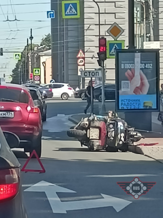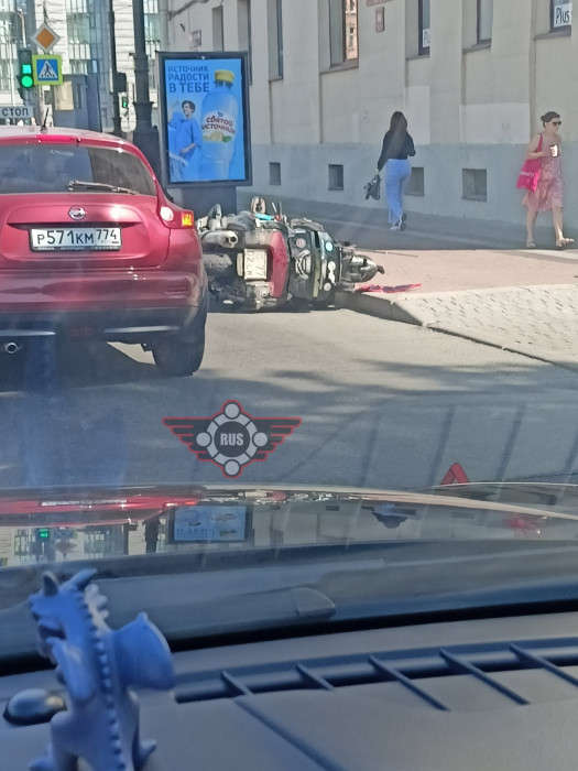 Дтп с мото примерно в 11:00 на перекрестке Московского пр. и наб. Обводного канала. Авто и мот. Мотоциклист в порядке. Подробностей дтп нет.