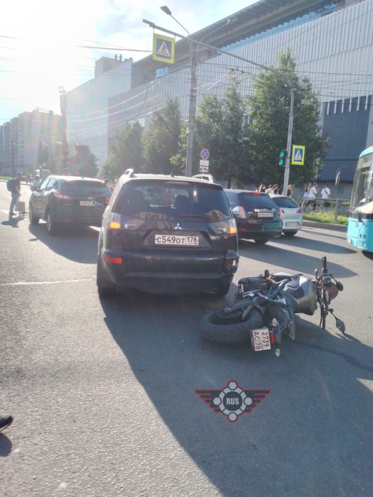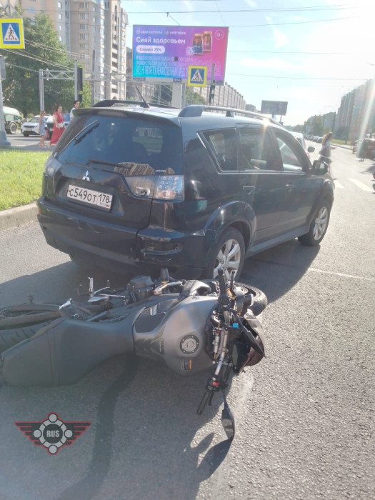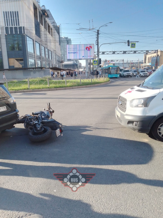 Дтп с мото на перекрестке Богатырского пр. и Коломяжского пр. Авто и мот Yamaha номер 2739АС78. Мотоциклист Денис, травма руки. ДПС и СМП на месте .