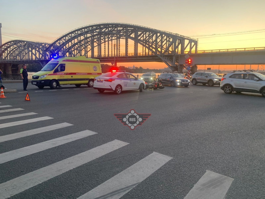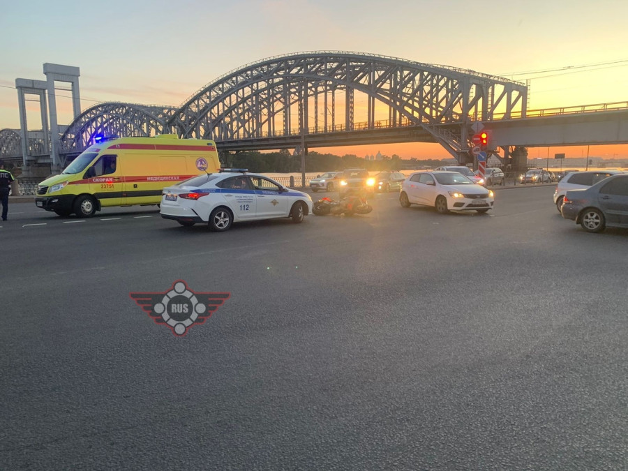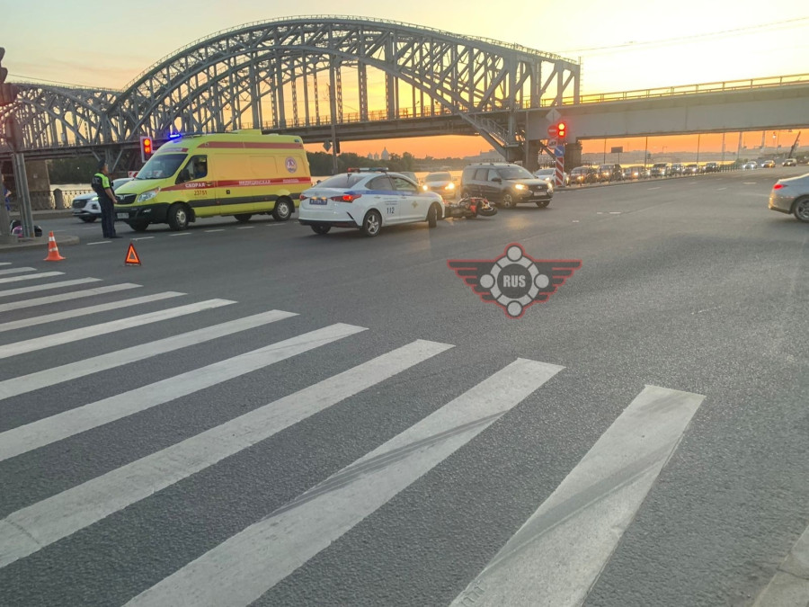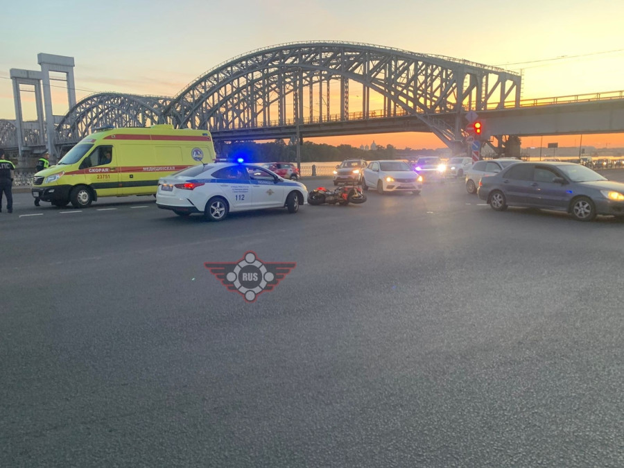 Дтп с мото на перекрестке Октябрьской наб. и Зольной ул.. Авто и мот BMW S1000R номер 4492АС78. Мотоциклист на ногах. На место едут друзья мотоциклиста.