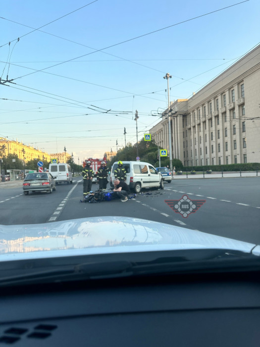 Дтп с мото на перекрестке Московского пр. и Благодатной ул.. Авто и мот. О состоянии мотоциклиста информации нет, стоит реанимация.