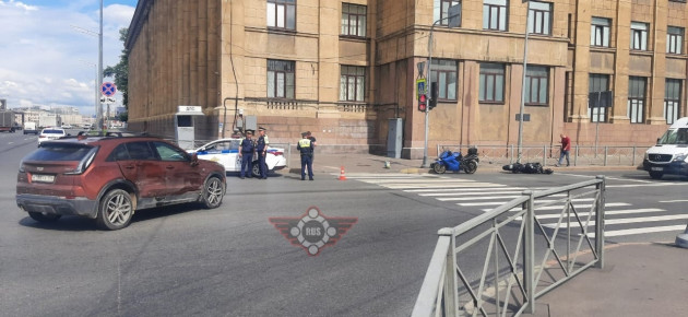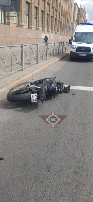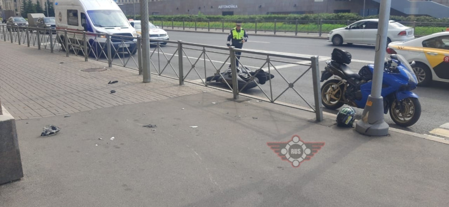 Дтп с мото на Малоохтинском пр., д.80/2. Авто и мот Yamaha YZF-R6 номер 3738АМ55. Мотоциклист (ушибы) от госпитализации отказался.