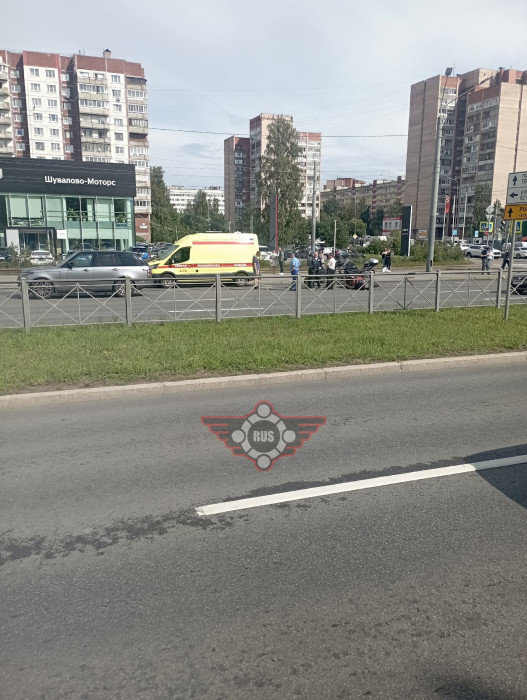 Дтп с мото на перекрестке Выборгского ш. и ул. Жени Егоровой. Авто и мот. О состоянии мотоциклиста информации нет.