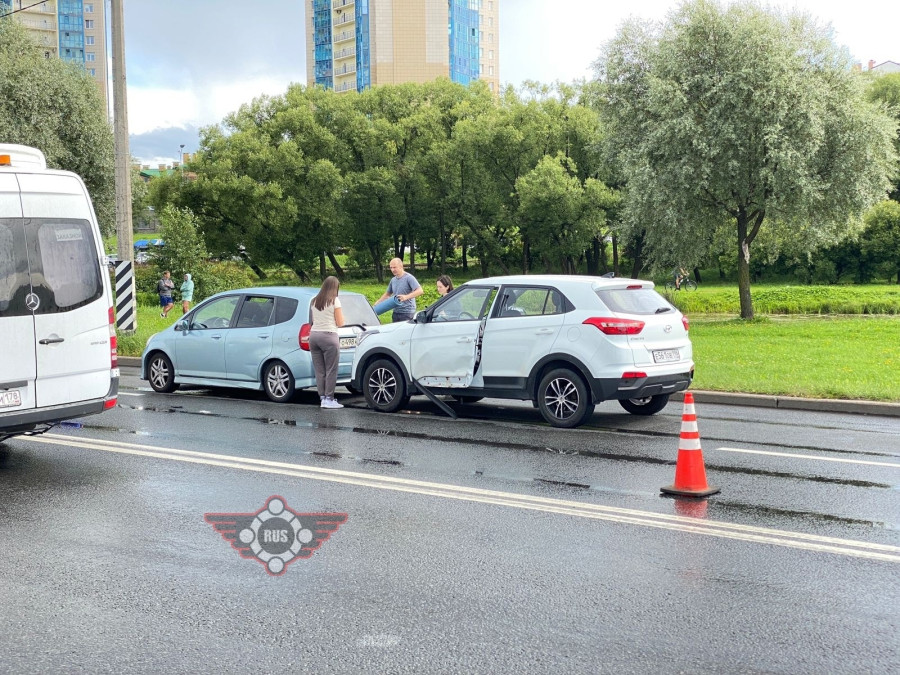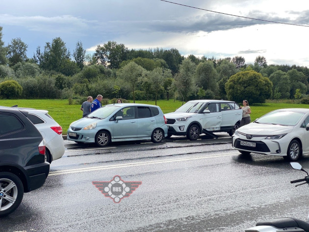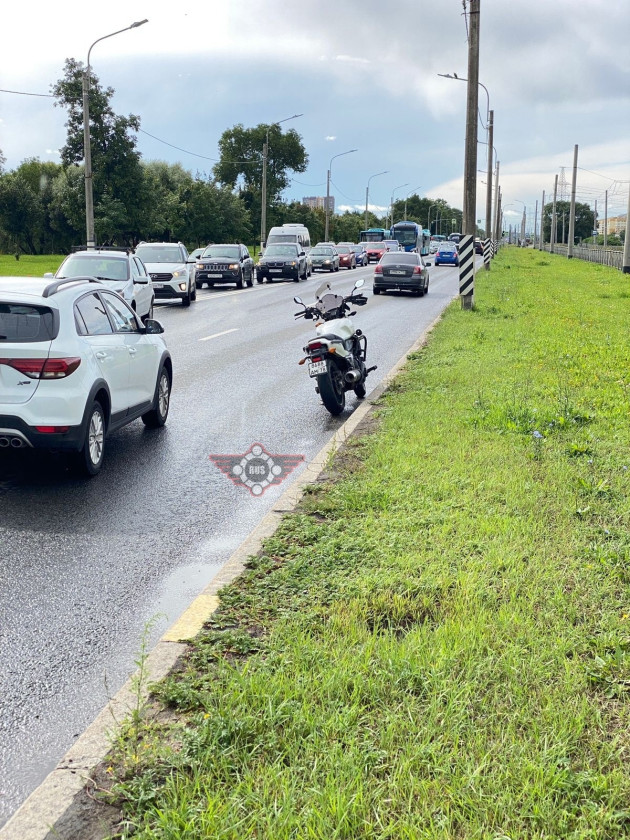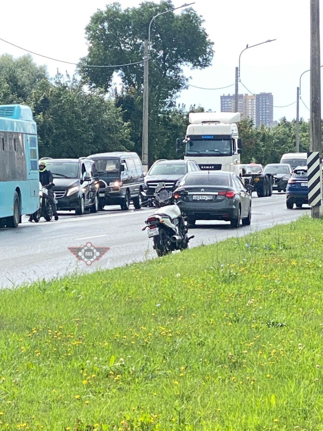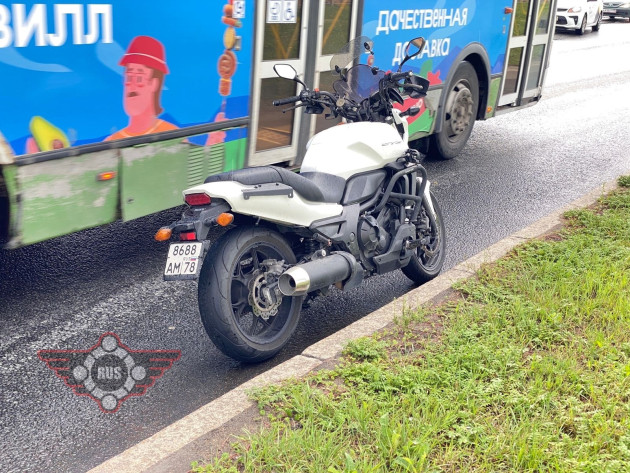 Дтп с мото на Петергофском ш., д.1. Авто и мот Honda CTX 700N номер 8688АМ78. Мотоциклист в сознании, в машине скорой помощи. Службы на месте.