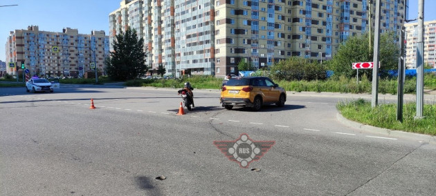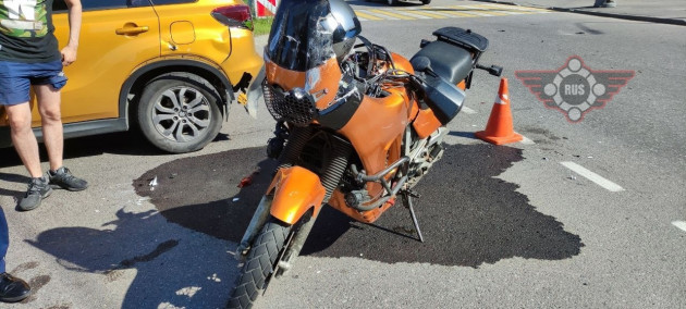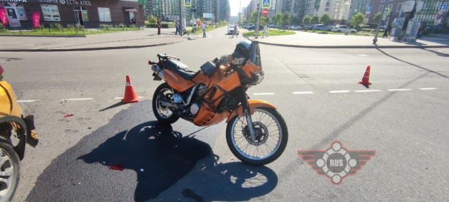 Дтп с мото на перекрестке Воронцовского бульв. и бульв.Менделеева, Мурино. Авто и мот Honda XL650V Transalp номер 1538АО42. Мотоциклист жив, перелом руки, увезла скорая. Мот заберут знакомые мотоциклиста.