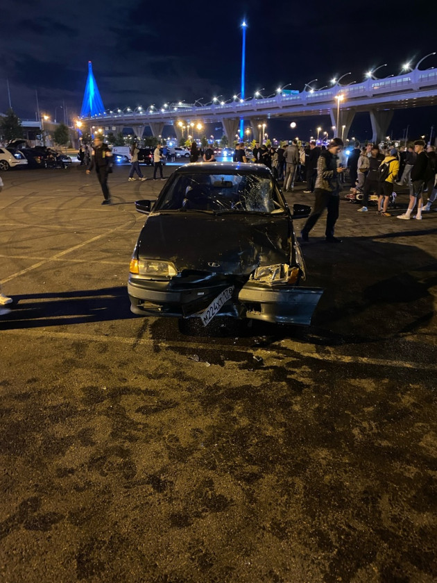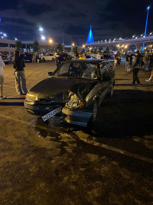 Дтп с мото примерно в 06:00 у "Зенит Арены". Авто и мот. Мотоциклист жив, увезли в больницу.