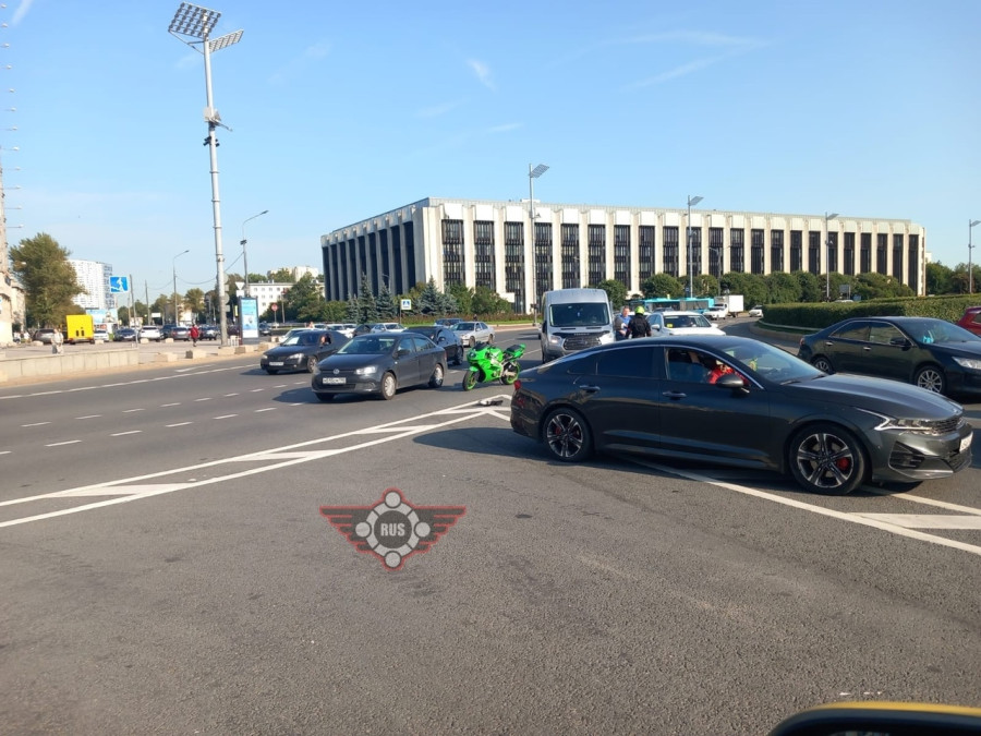 Дтп с мото на Московском пр., д. 222. Авто и мот. Мотоциклист в порядке.