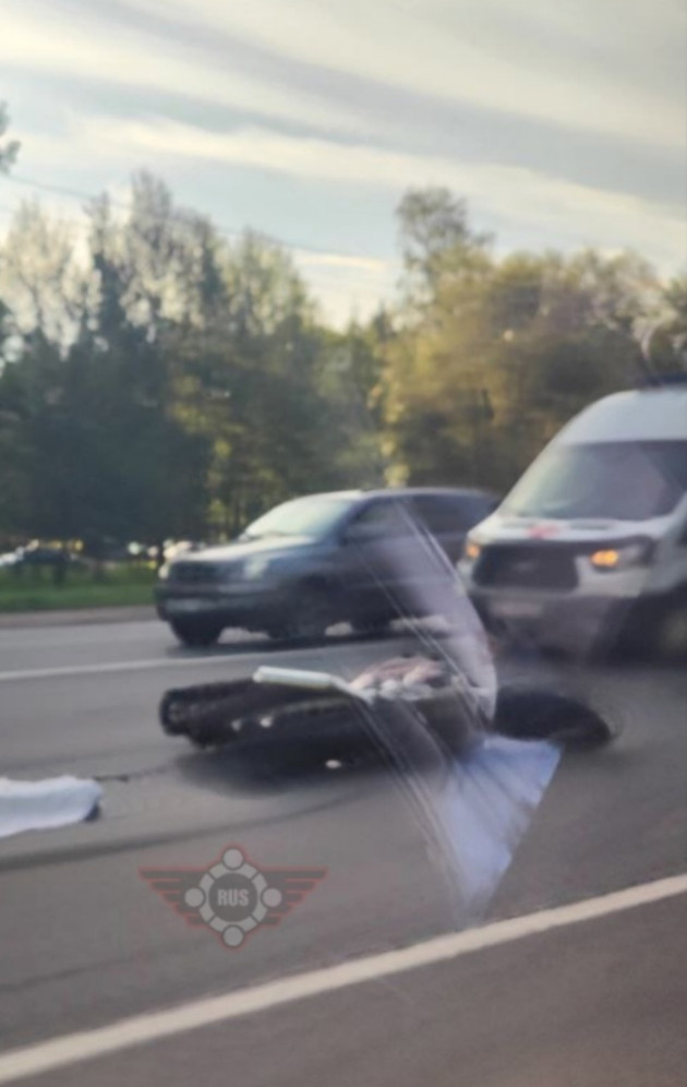 Дтп с мото на перекрестке Красносельского ш. и Колобановской ул., Горелово. Эвакуатор, КАМАЗ и мот Honda NC700 номер 3420АР78. Мотоциклист погиб.