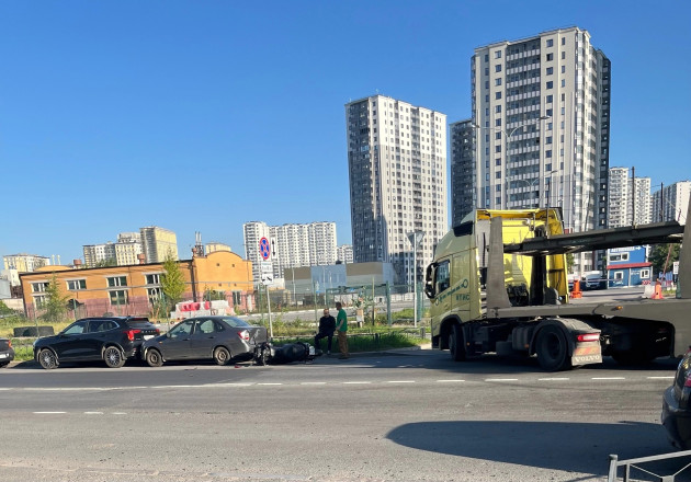 Из СМИ: грузовой Volvo догнал мотоциклиста и повредил две стоящие машины на обочине.