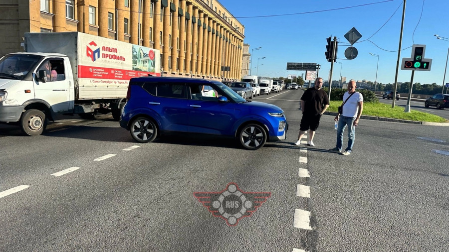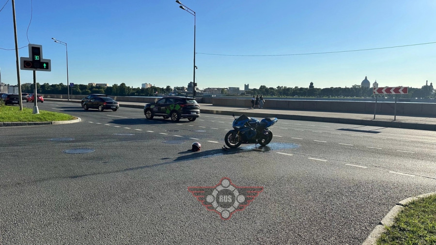 Дтп с мото на Малоохтинском пр., д.82/1. Авто и мот. Мотоциклист в порядке (ссадины), от помощи отказался.