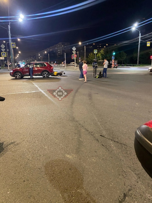 Дтп с мото на перекрестке Искровского пр. и ул. Дыбенко. Авто и мот. Мотоциклист лежит на земле. Подробностей дтп нет.