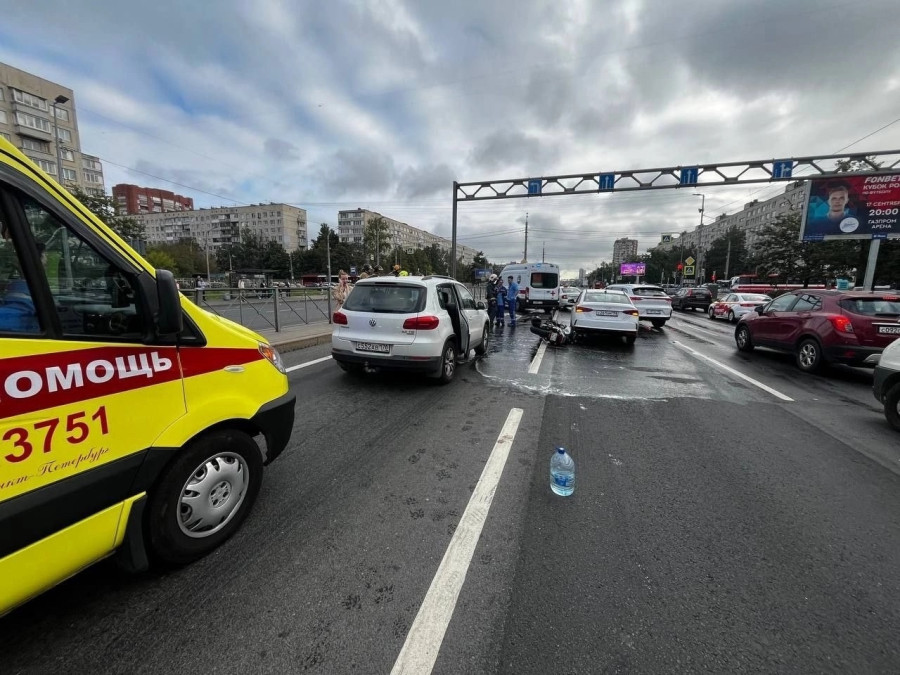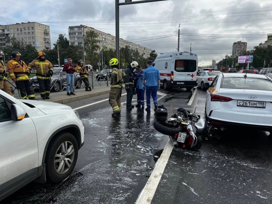 Дтп с мото на перекрестке Дунайского пр. и Купчинской ул. Авто и мот Honda CB400 Super Four номер 3317АМ78. О состоянии мотоциклиста информации нет. Подробностей дтп нет.