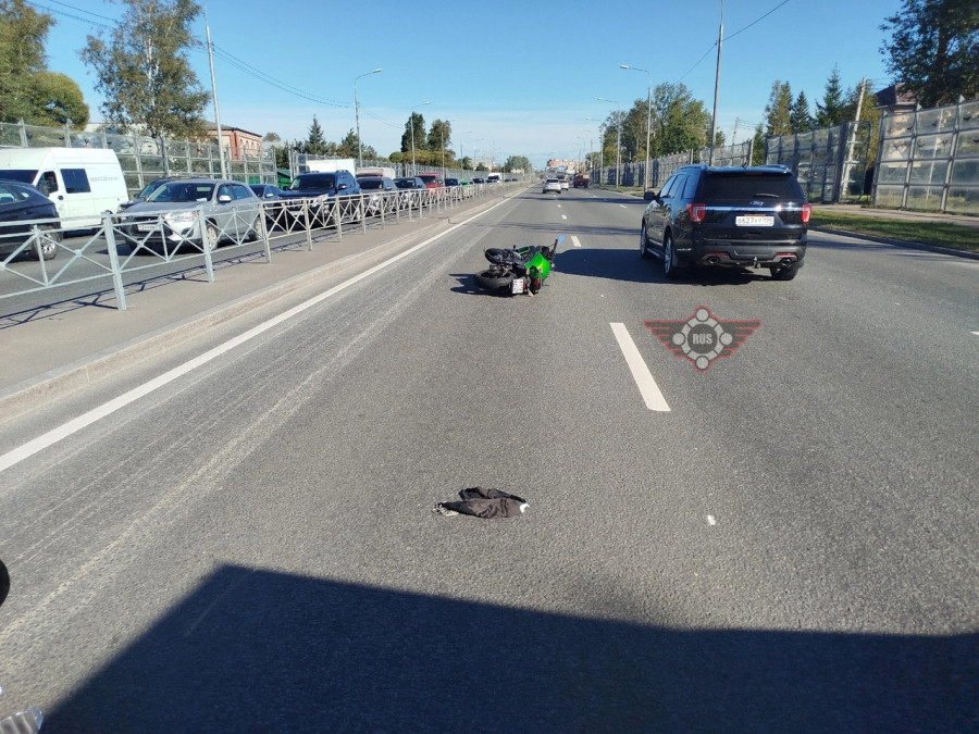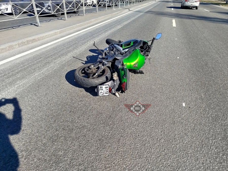 Дтп с мото примерно в 11:40 на Таллинском ш., д.140. Авто и мот Kawasaki Ninja 400 номер 8118АЕ47. Мотоциклист на ногах. ДПС на месте.