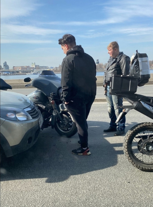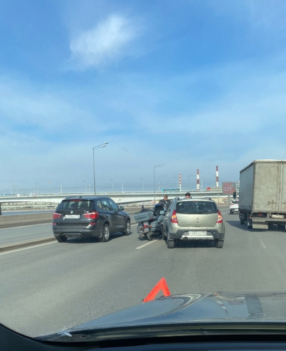 Дтп с мото на Малоохтинском пр., д.84. Авто и мот. Мотоциклист в порядке.