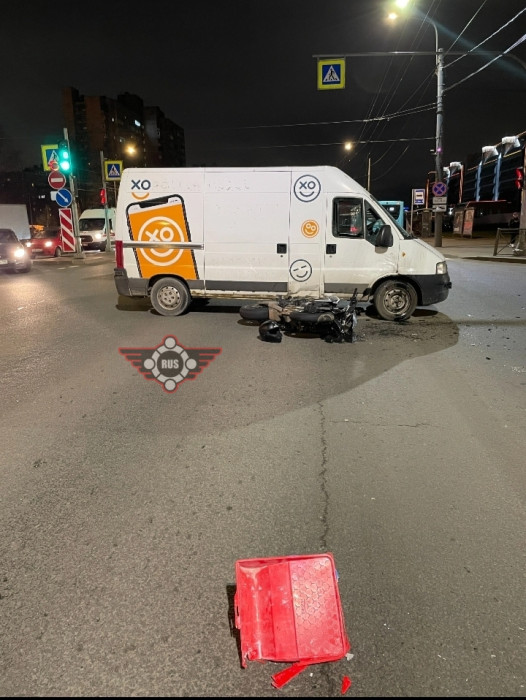 Дтп с мото на перекрестке ул.Крыленко и пр. Большевиков. Авто и мот Honda CB650FA номер 5634АР78. Мотоциклист в порядке, стоит общается с водителем дукато.