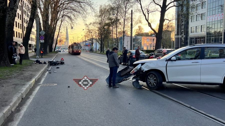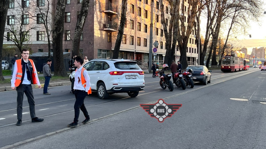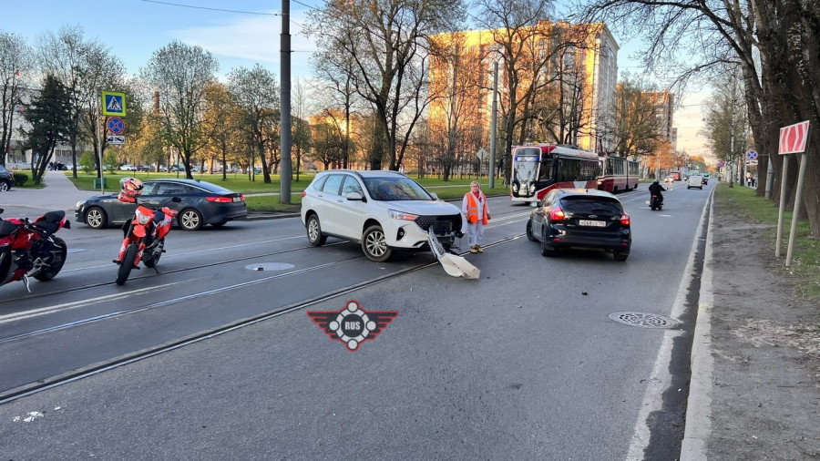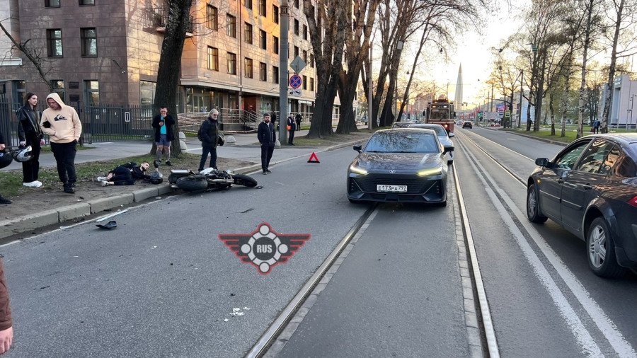 Дтп с мото примерно в 20:40 на ул. Савушкина, д.104. Авто и мот Triumph Street Triple номер 1403АУ86. Мотоциклиста Адвахова Андрея Николаевича (1998 г.р.) увезли в Мариинскую больницу, живой, средней тяжести, закрытый перелом правой ноги. Сообщивший о ДТП на месте, ждут ГАИ.