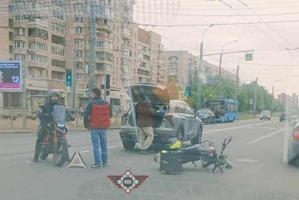 Дтп с мото на перекрёстке пр. Ветеранов и ул. Партизана Германа. Авто и мот. О состоянии мотоциклиста информации нет.
