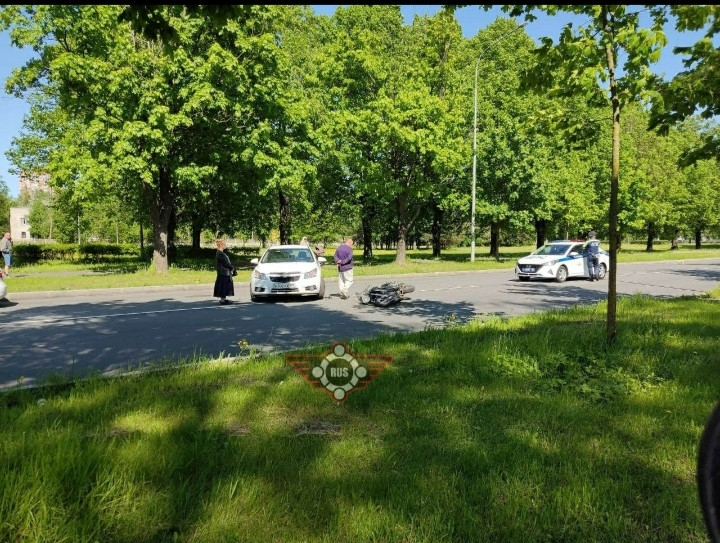 Дтп с мото на Бестужевской ул. (59.980822, 30.418607). Авто и мот. Мотоциклист увезен в больницу. ДПС на месте.