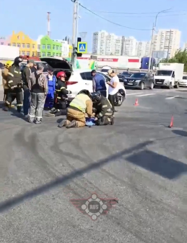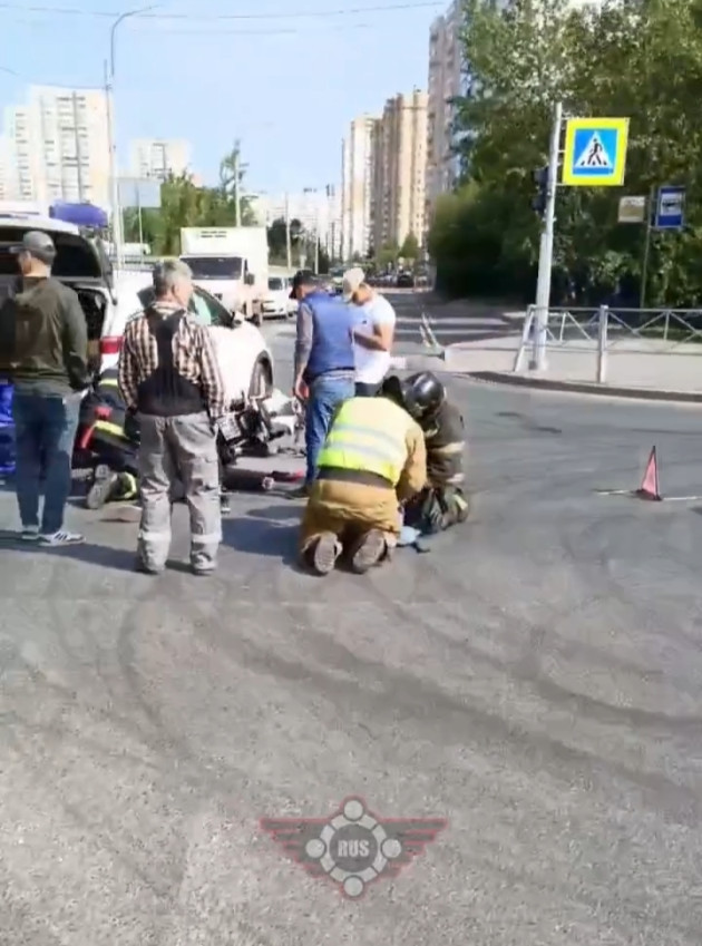 Дтп с мото на перекрестке Вишерской ул. и Пушкинской ул., Шушары. Авто и мот. Мотоциклист лежит, состояние тяжелое.