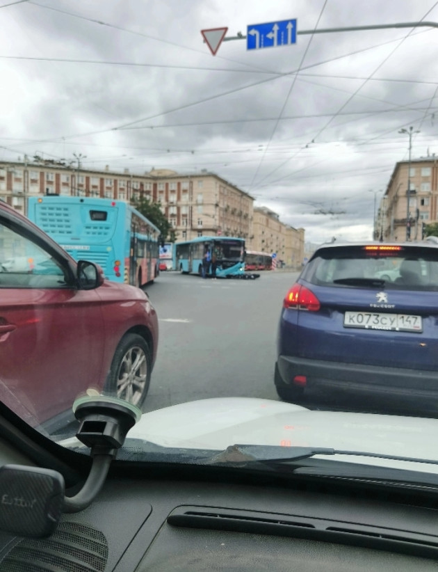 Дтп с мото примерно в 13:15 на перекрестке Заневского пр. и Новочеркасского пр. (Заневская площадь). Автобус и мот.