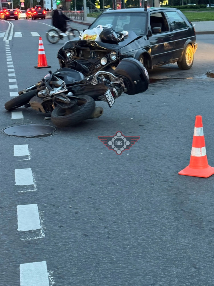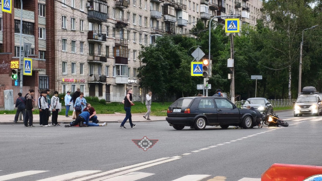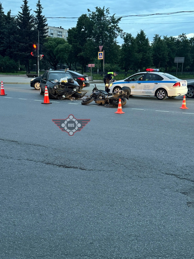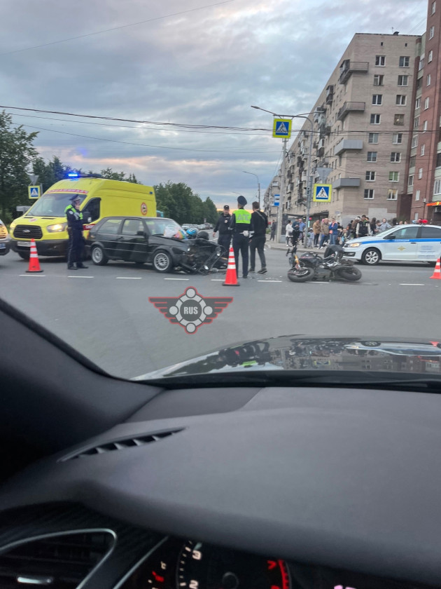 Дтп с мото примерно в 21:30 на перекрестке ул.Веры Слуцкой и Пролетарская ул., Колпино. Авто и мот BMW G310R номер 8084АВ29. Мотоциклист увезен в больницу. Пассажира (девушка) увезла реанимация.