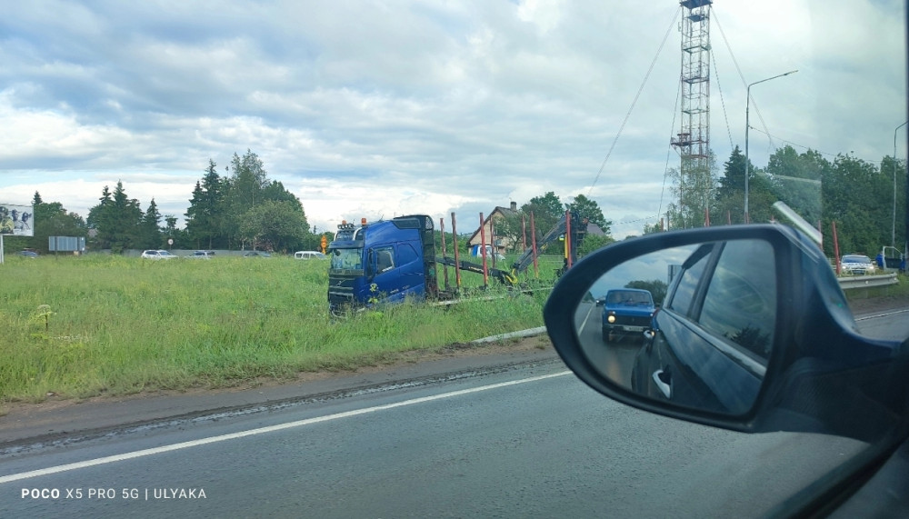 Из СМИ: Фура в кювете + разбитый мот или мопед. Скорая, ДПС.