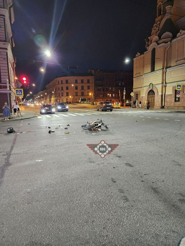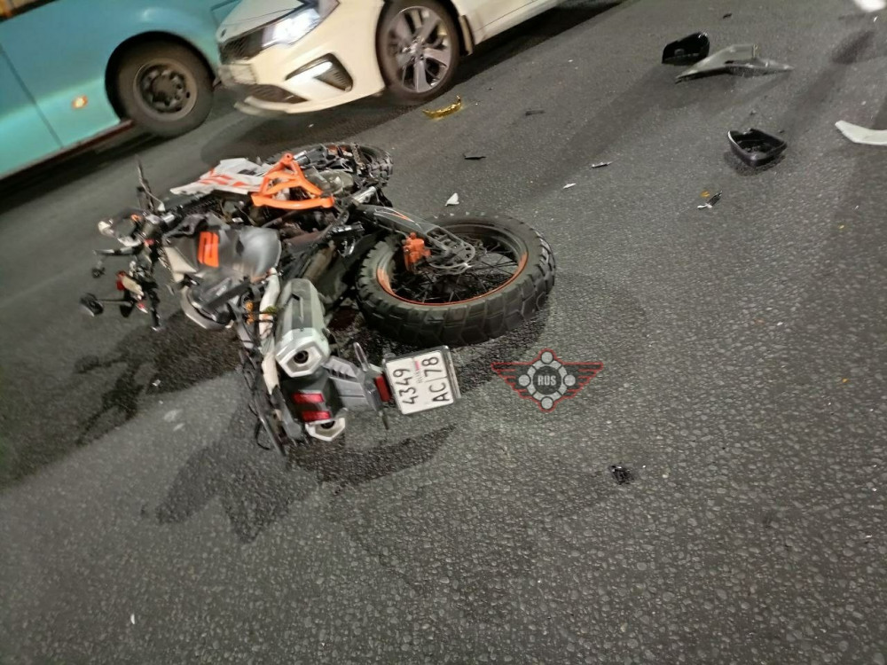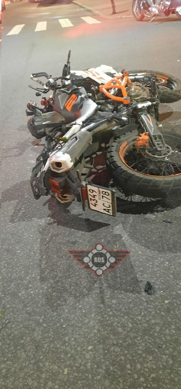 Дтп с мото на перекрестке Лермонтовского пр. и пр. Римского-Корсакова. Авто и мот Fuego Tekken 250 номер 4349АС78. Мотоциклист Нефедов Сергей Дмитриевич (открытый перелом ног) в машине скорой помощи. ДПС на месте.