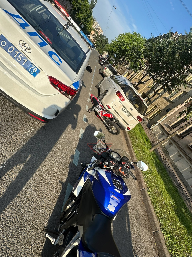 От автора поста: водитель автомобиля, выезжая со двора, не уступил мотоциклу. Мотоциклист с переломами увезен в больницу. Мот заберут друзья.