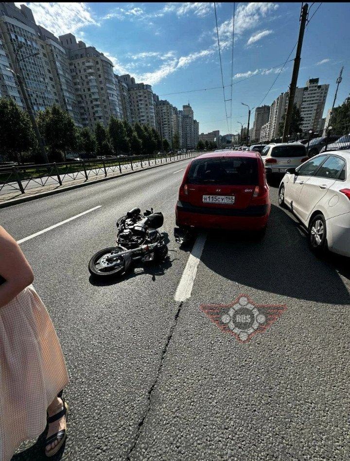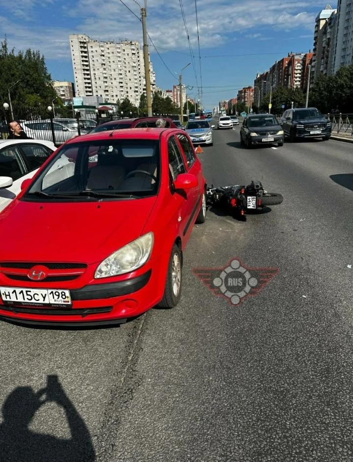 Дтп с мото на Комендантском пр., д.22. Авто и мот Motoland XF300-A номер 9764АС78. Мотоциклист (в сознании, травма ноги) увезен в больницу. Мот заберёт ГАИ.