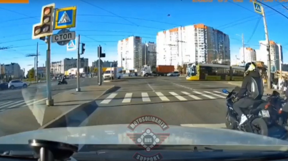 Примерно в 17:44. Мотоцикл и еще участники.