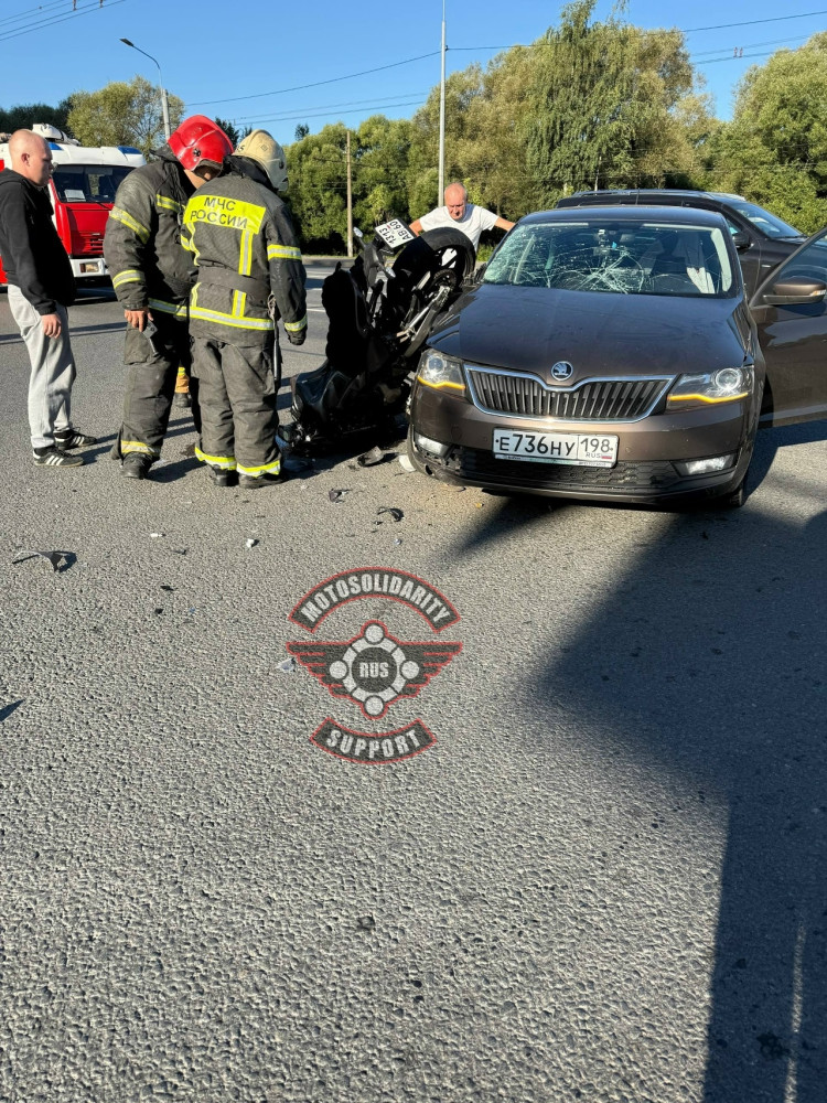 Дтп с мото на перекрестке пр.Маршала Жукова и ул.Солдата Корзуна. Авто и мот RegulMoto Alien Monster номер 1313АВ60. Мотоциклист (в сознании, травма ноги) ждёт скорую.