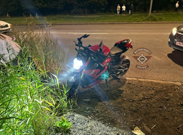 Дтп с мото на Петергофском ш., д.45. Авто и мот BMW S1000R номер 7787АО78. Мотоциклист (в сознании) в скорой. Родственники оповещены. На месте друг мотоциклиста. Со слов очевидца, мотоциклист, судя по всему, объезжал машину слева, и она его зацепила.