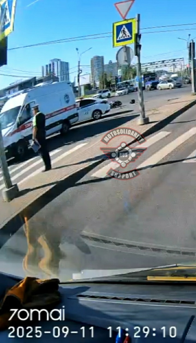 Дтп с мото примерно в 11:20 на перекрестке Дунайского пр. и Софийской ул.. Мот и скорая. Полиция и скорая на месте. Мотоциклиста увезла реанимация.