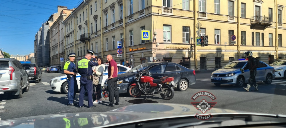 Дтп с мото примерно в 11:00 на перекрестке пр.Римского-Корсакова и Лермонтовского пр.. 2 авто и мот Suzuki GSX400 номер 6937АС78. Мотоциклист увезен в больницу. Мотоцикл заберут на штраф стоянку.