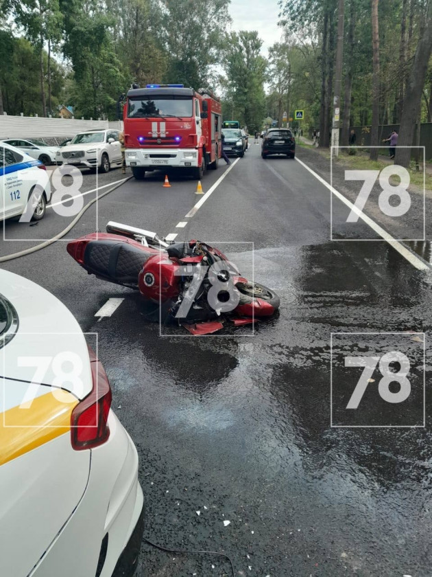 Дтп с мото на Приморском ш., д.471. Авто и мот Honda CBR1100XX. Мотоциклист госпитализирован с черепно-мозговой травмой и переломами.