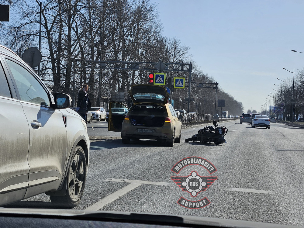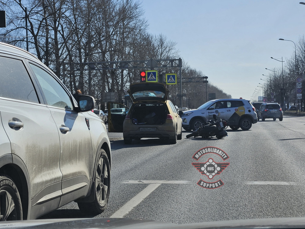 Дтп с мото примерно в 13:30 на перекрестке Витебского пр. и Кузнецовской ул.. Авто и мот Ducati Multistrada V4 S номер 7596АМ78. Мотоциклист на ногах, но хромает.