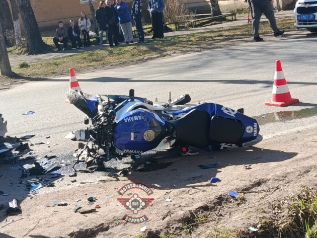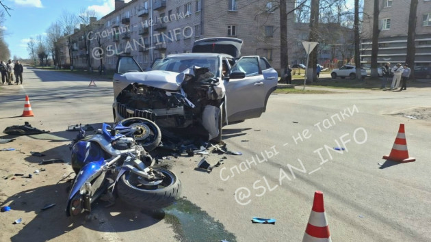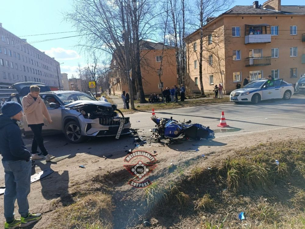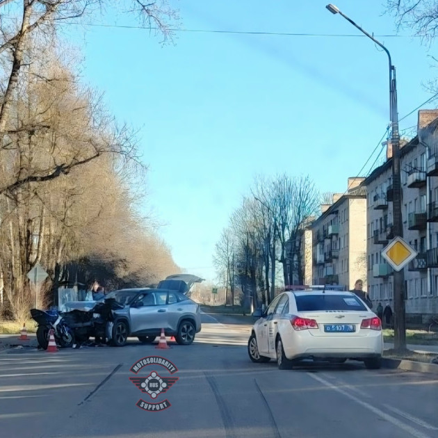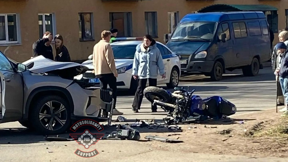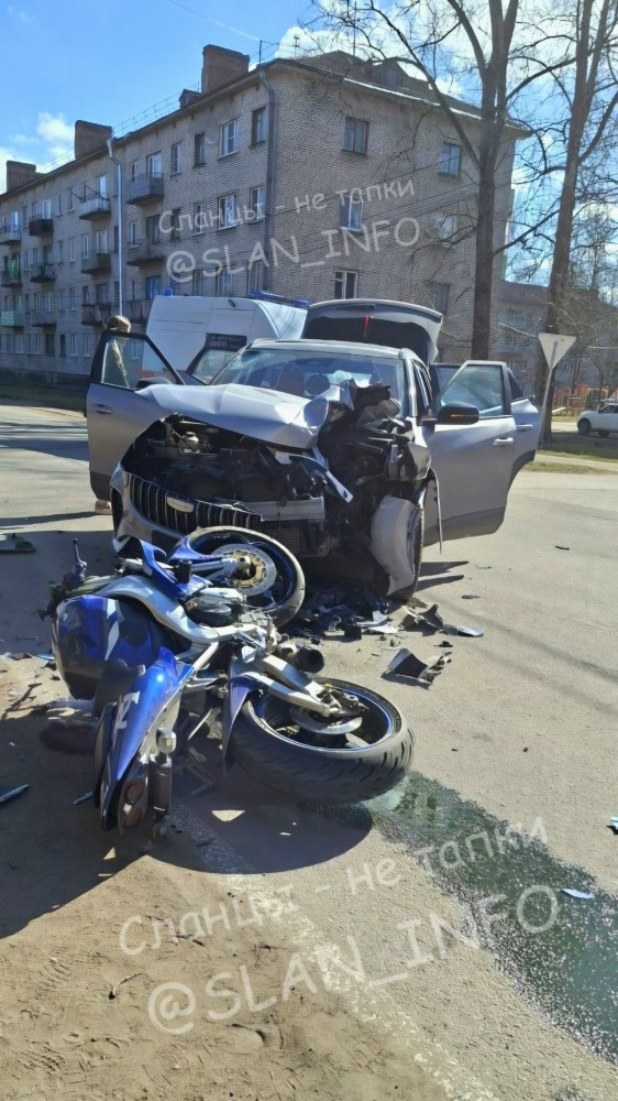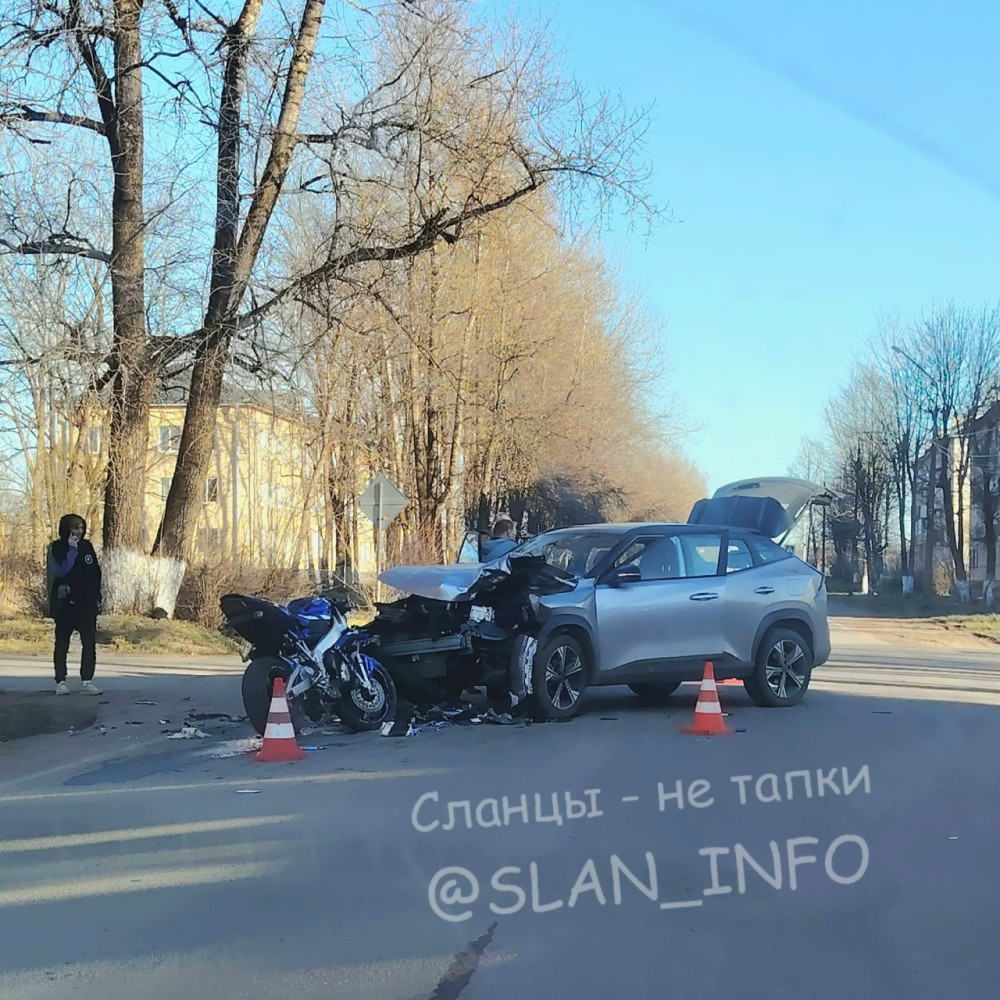 Дтп с мото примерно в 13:40 на перекрестке ул.Ломоносова и ул. Жуковского, г. Сланцы. Авто и мот Yamaha R1.