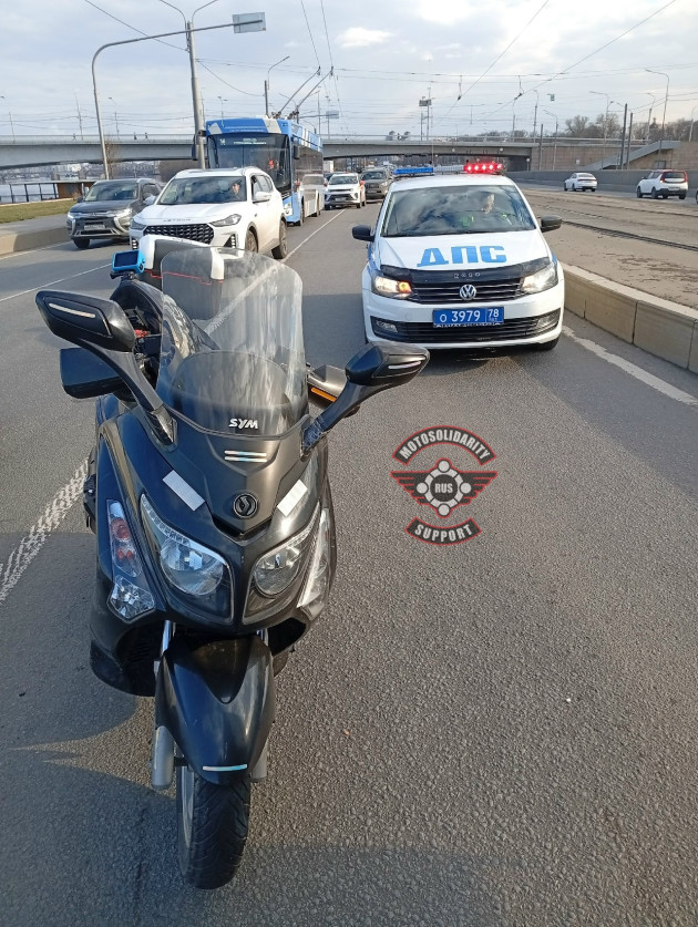 Дтп с максискутером в 15:30 на перекрестке Синопской наб. и Херсонской ул.. Авто и максискутер Sym GTS 300i номер 0822АС78. Мотоциклист в порядке.