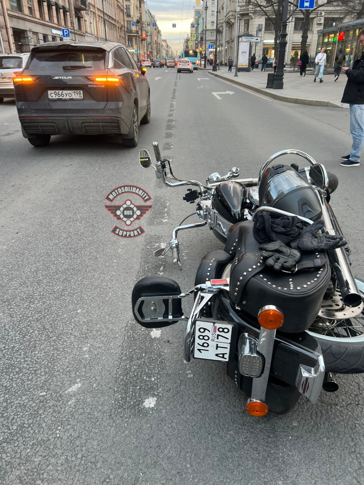 Дтп с мото примерно в 19:30 на перекрестке Большого пр. П.С. и ул. Подковырова. 2 авто и мот Harley-Davidson Heritage Softail номер 1689АТ78. Мотоциклист цел. Таксист высаживал пассажиров и дверью задел мот, после этого мотоцикл отлетел в попутную машину.