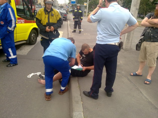 Сам живой, сильная травма колена (наколенники лежали в рюкзаке...). Увезли в Александровскую больницу.