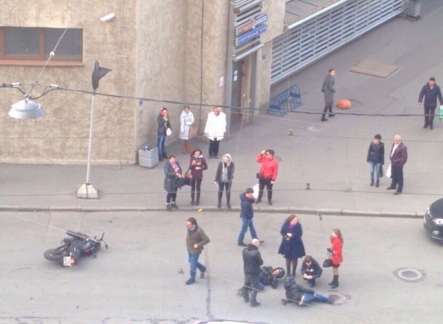 Авария на трамвайных путях "Косой линии" В.О. Машина при развороте сбила мотоцикл с пассажиром. Скорая вызвана.