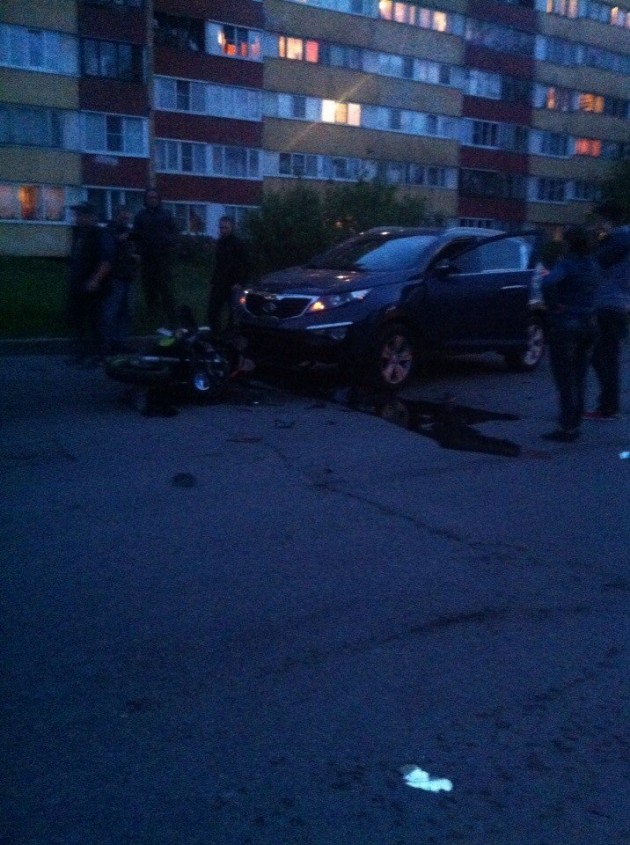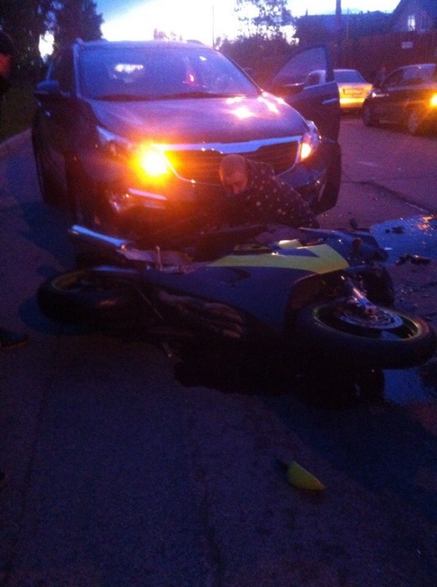 Авария в Красном Селе на Стрельнинском шоссе. Кроссовер совершил столкновение с мотоциклом (или мотоцикл совершил столкновение с кроссовером).