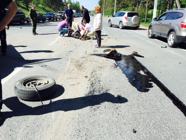 Дтп с мотоциклистом при въезде в Выборг.ехал просто ужасно,обгонял не обращая внимания на сплошные. Влетел в разворачивающийся автомобиль. 2 открытых перелома,сломана челюсть и ребра.