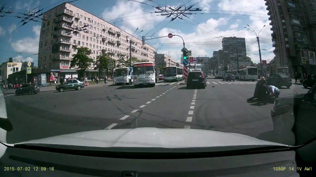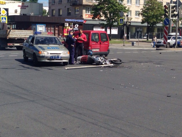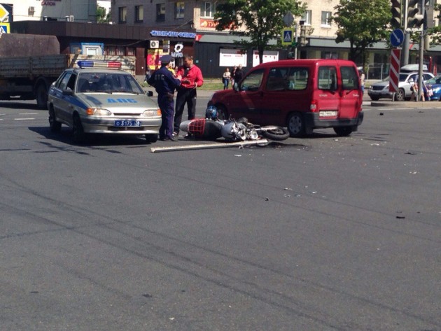 Пресечение Зины Портновой и Ленинского пр. сбит мотоциклист на перекрестке. В 12-00. Видео приложу через несколько минут