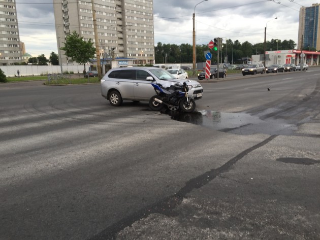 не пропустил коробчник на мицубиси на перекрестке, пилот шел прямо, мицубиси поворачивал налево. Видеорегистратора есть, свидетели есть, водила мицубиси поет что не виновен. Пилота Увезли в костюшко или в купчино, медики еще сами не решили