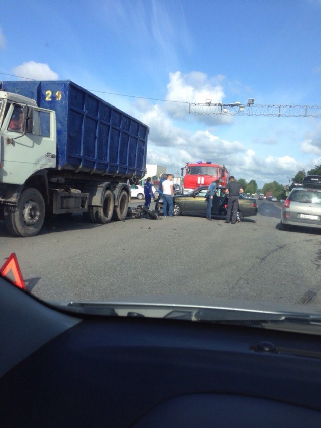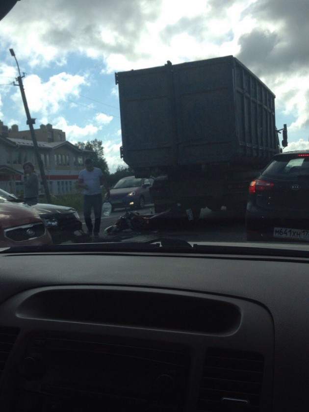 Авария с МОТОциклисткой, камаз, легковая. Пушкинское шоссе в сторону Пушкина. Пробки нет, Дпс нет. Все живы! в спец сапогах для мотоцикла стояла девушка! ( с чего делаю вывод, что она на мотоцикле была)